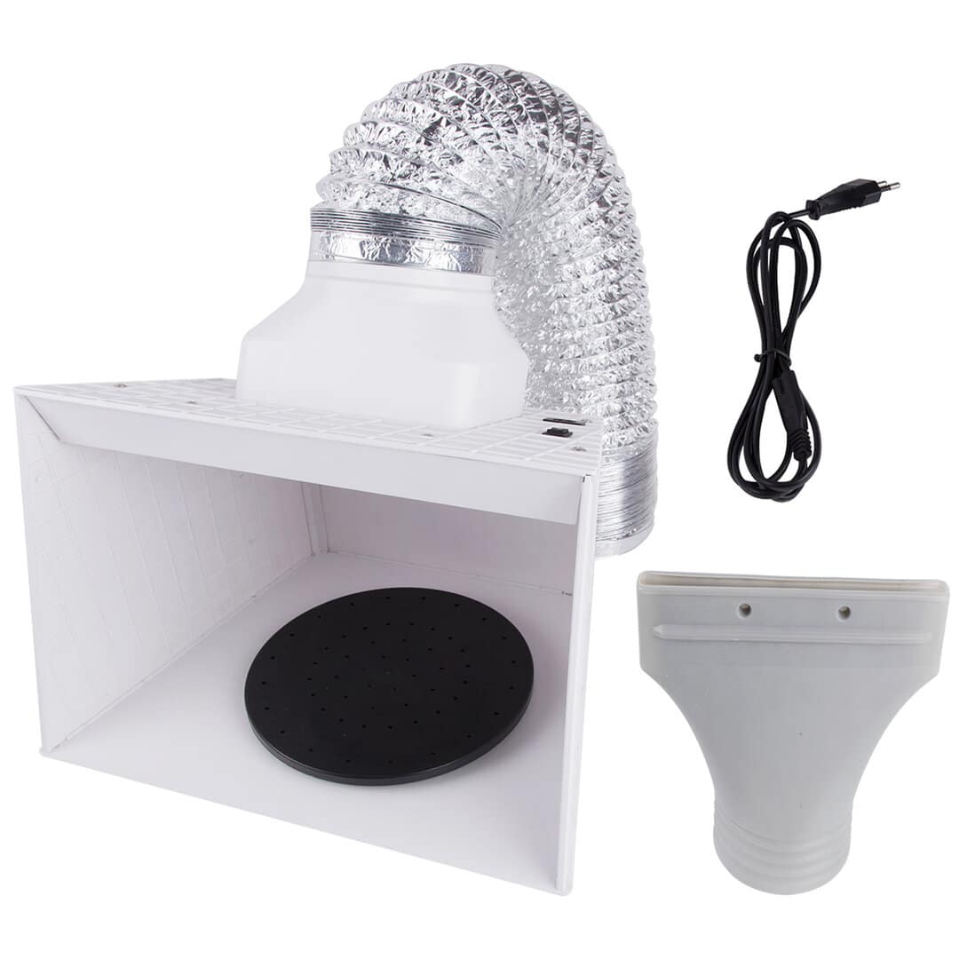 Portable Airbrush Hobby Spray Booth Spray Box BD-515 met LED-verlichting & Draaitafel voor het spuiten van modellen, kunst, ambachten, taartversiering, make-up, spijkers, handwerk, enz.