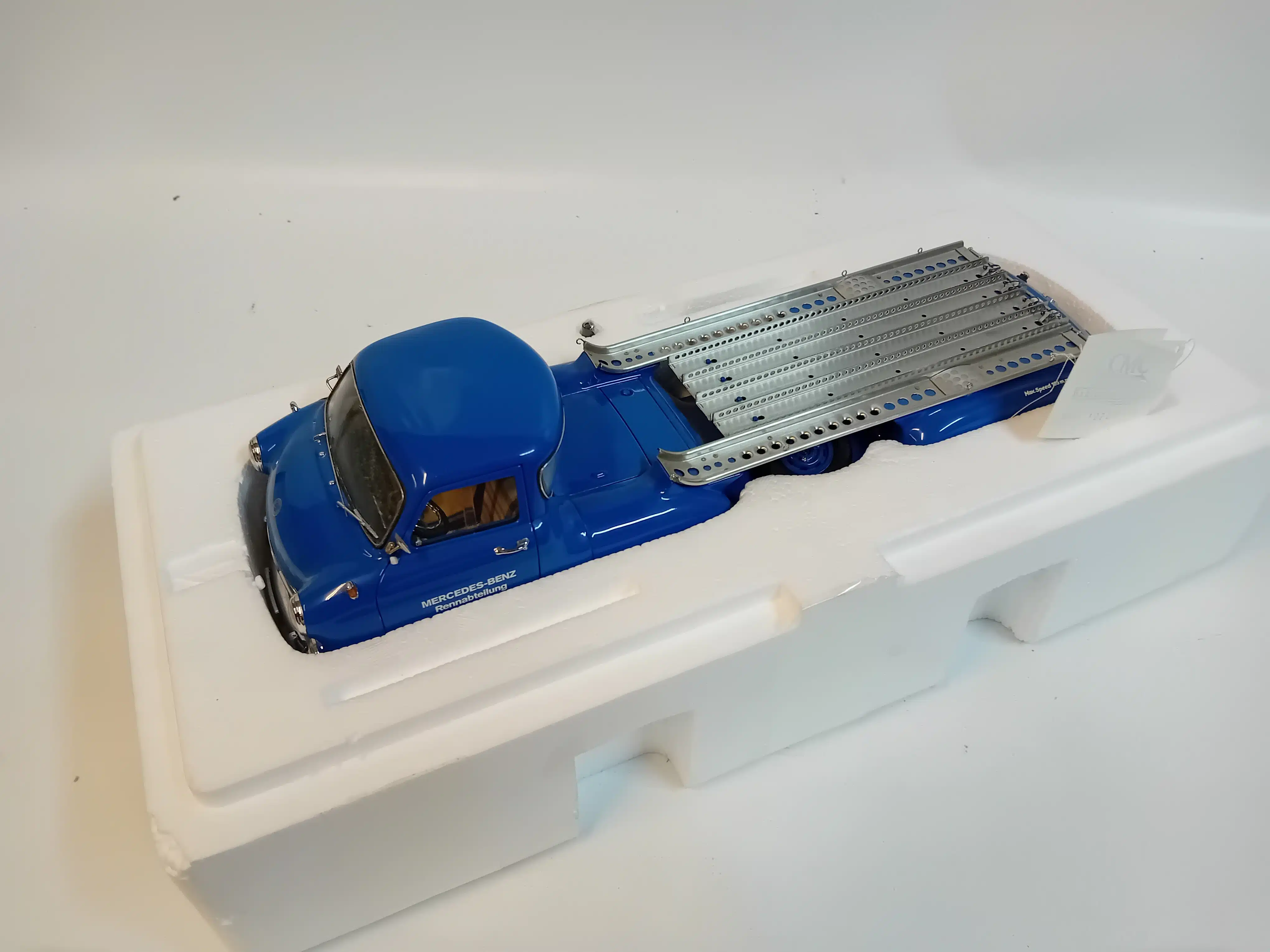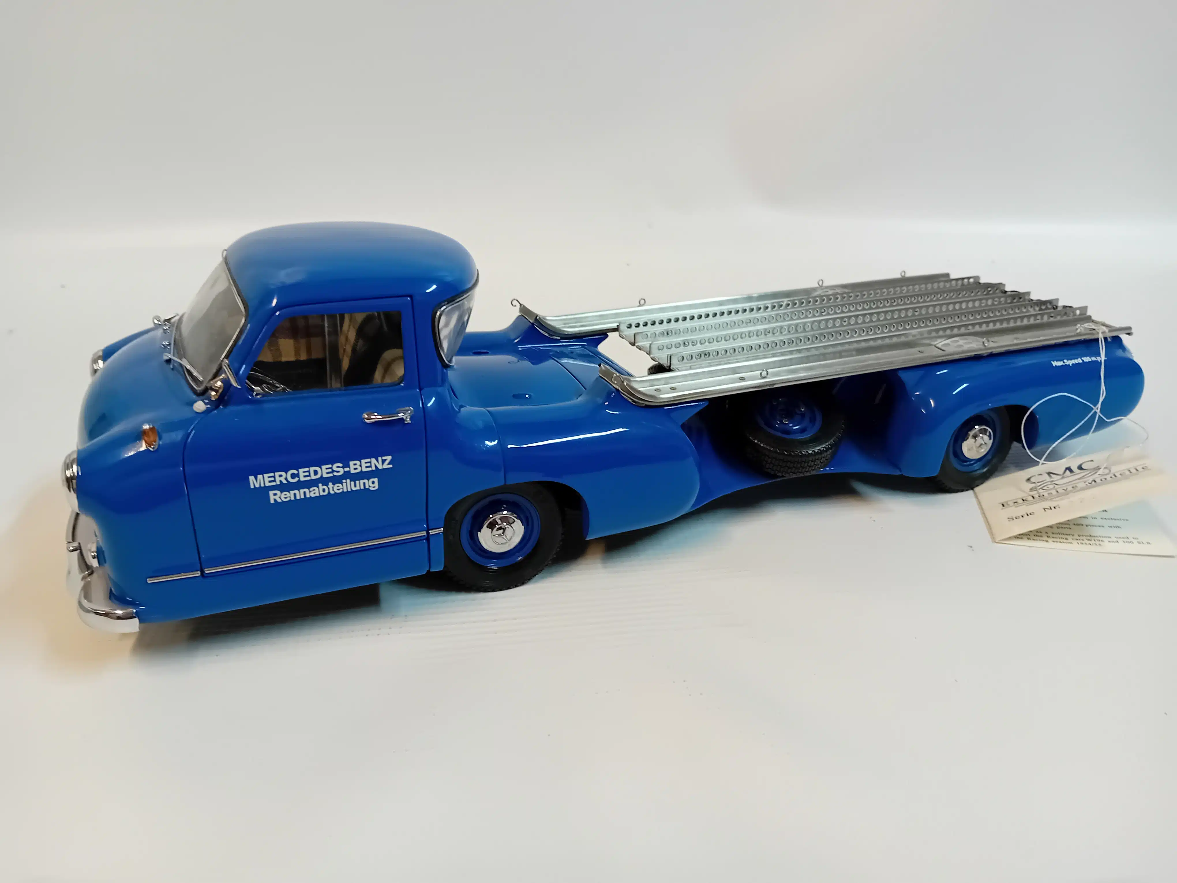 Bijzonder replica van een racetransportwagen van Mercedes. model 1954.