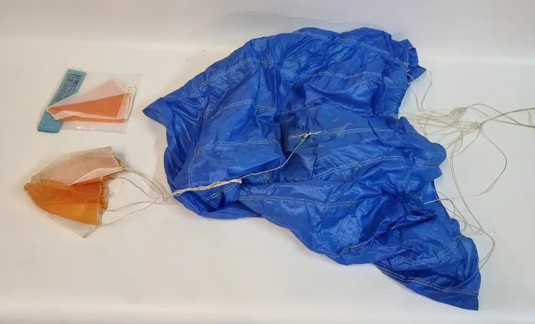 kleine parachut gescheurd, zit een nieuwe in verpakking bij.