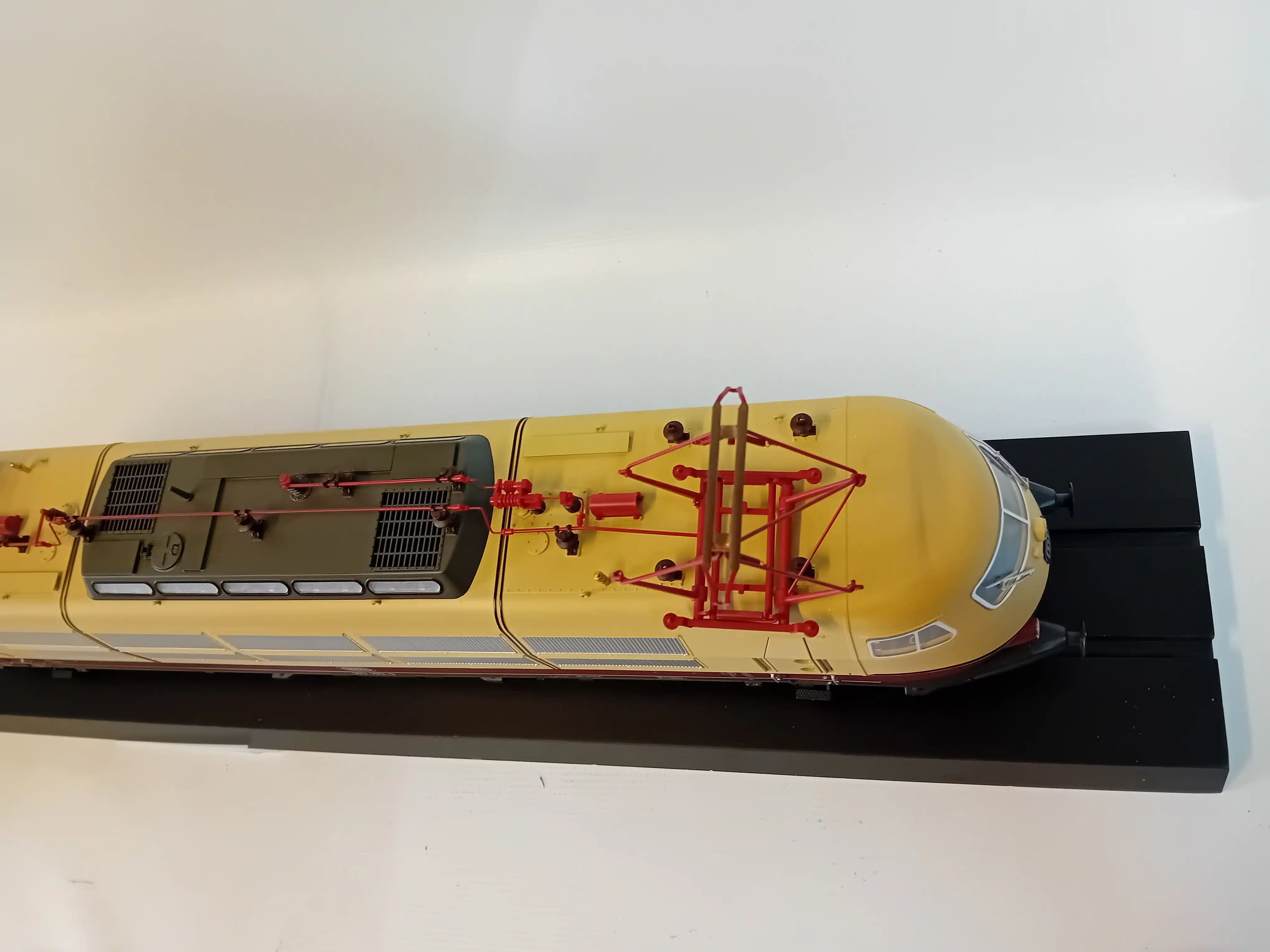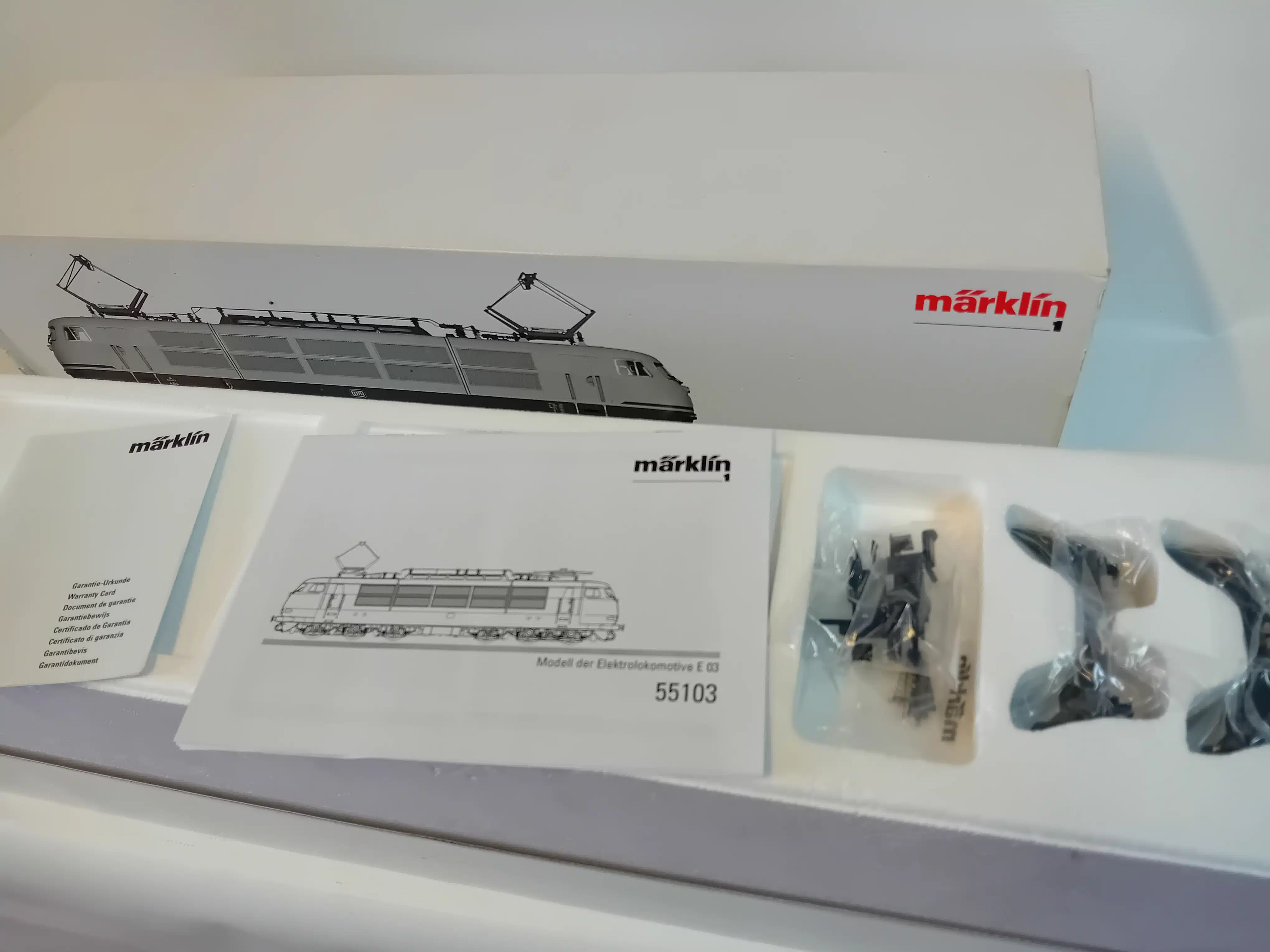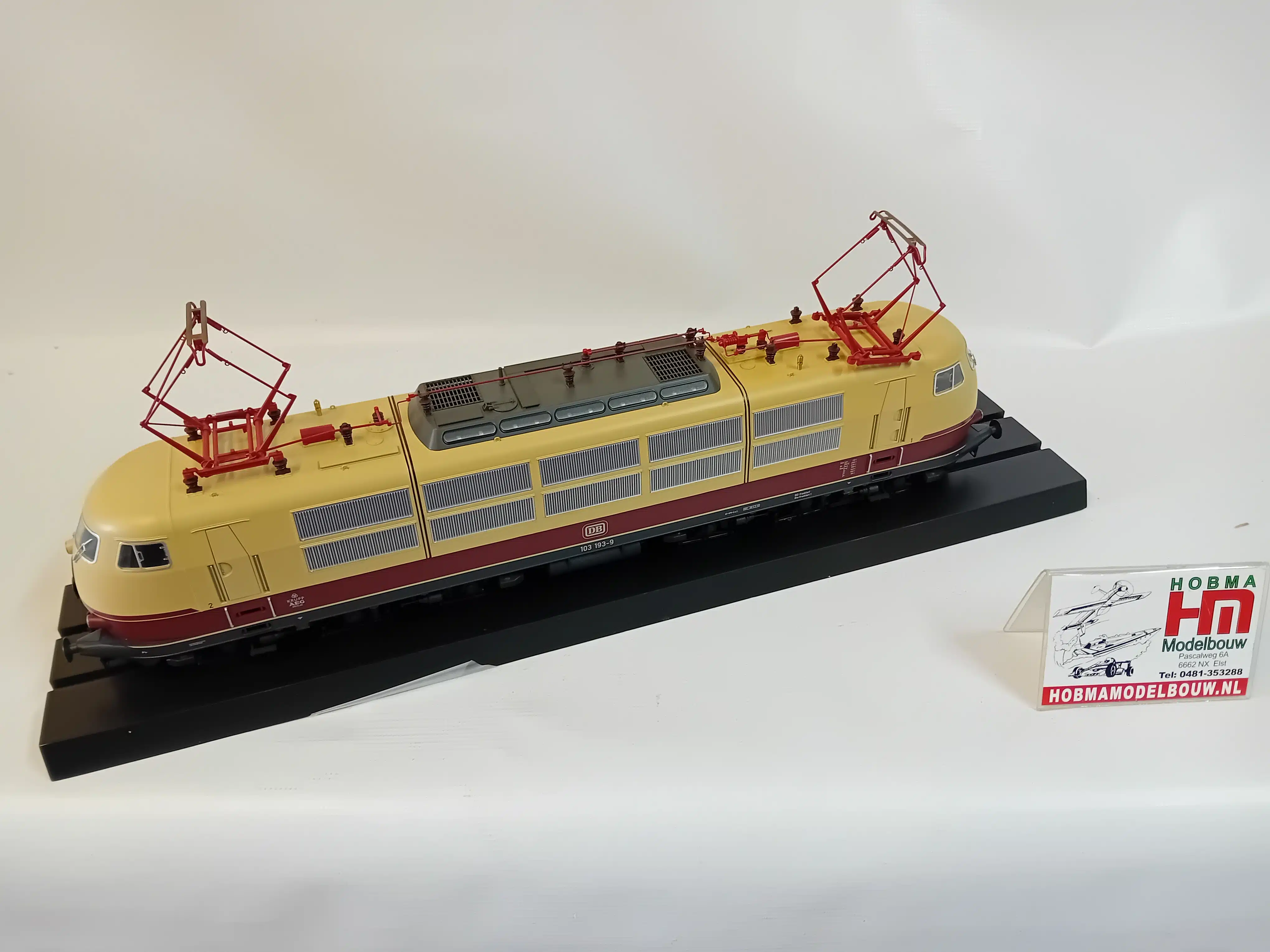 Sneltreinlocomotief serie 103.1 van de Deutsche Bundesbahn (DB). Serie-uitvoering met schaarstroomafnemers en dubbele zijventilatoren.