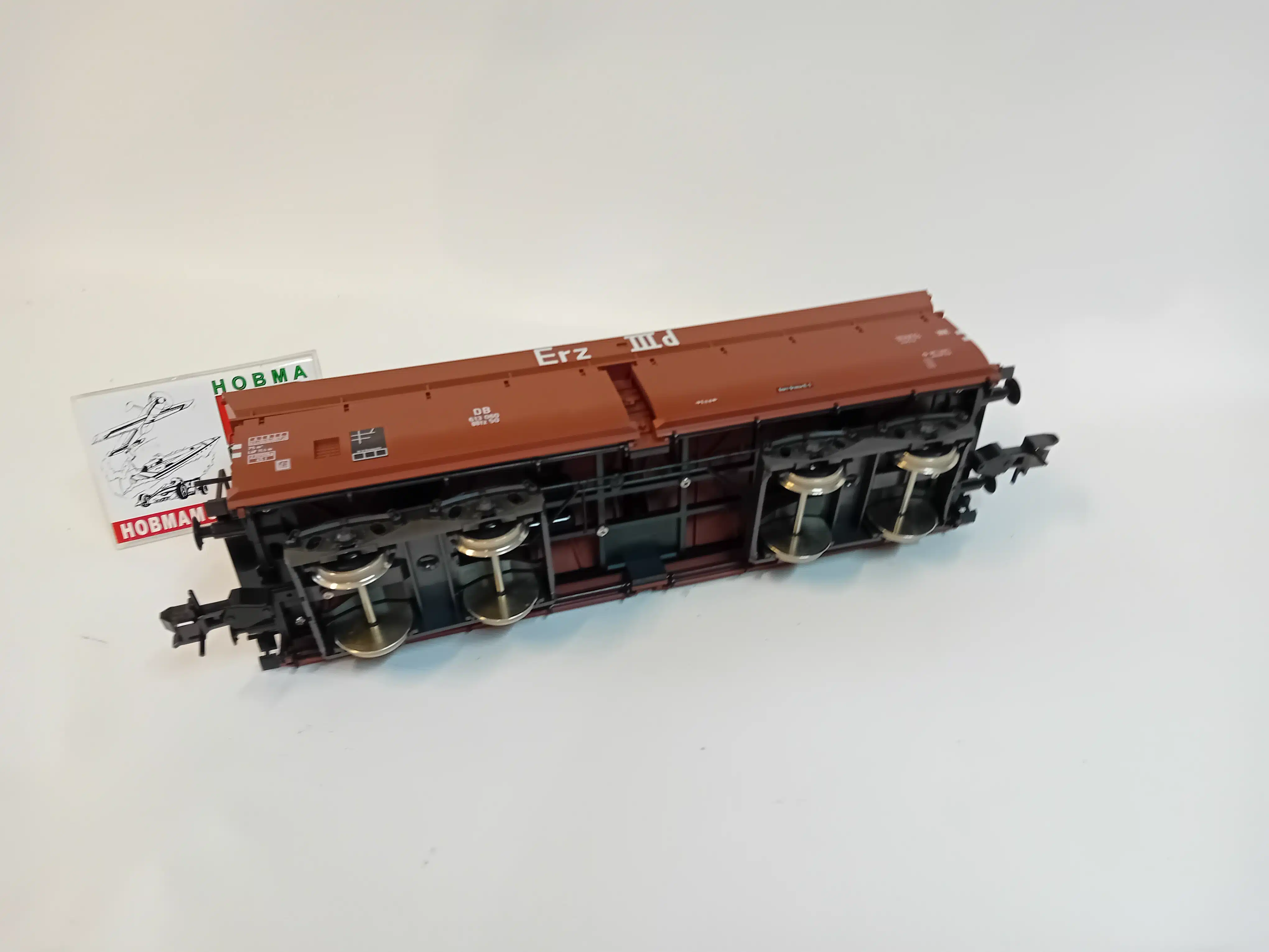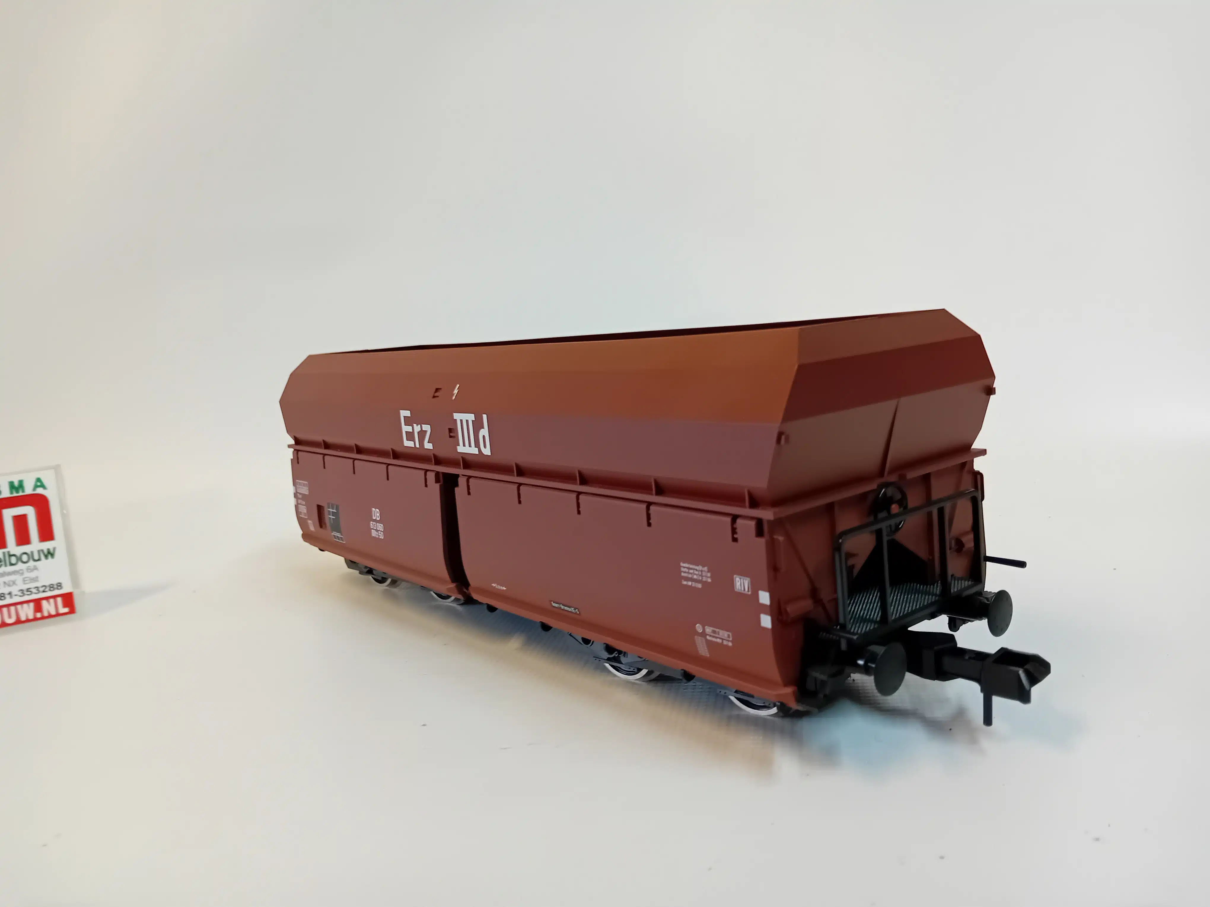 Ruime zelflosser Fad-50 Ootz van de Deutsche Bundesbahn (DB) in overgangsopschrift. Gebruikt voor complete treinen in bulkgoederenverkeer met kolen, cokes en erts. Zonder doos