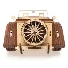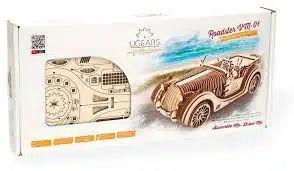 Het unieke charisma van het model komt van zijn uitstekende technische eigenschappen én van het gedetailleerde, realistische, retro ontwerp. De slimme combinatie van de multiplex onderdelen van verschillende diktes, 4 en 2 mm, zorgt ervoor dat de carrosserie van de motor auto er gestroomlijnd en chique uit ziet. Open de motorkap en zie de krachtige V8 motor en bewegende kleppen. Uw sportauto heeft een transmissie die drie standen heeft: vooruit, achteruit en neutraal. De schokdemper van de voorwielen laat de Roadster er nog realistischer uitzien.